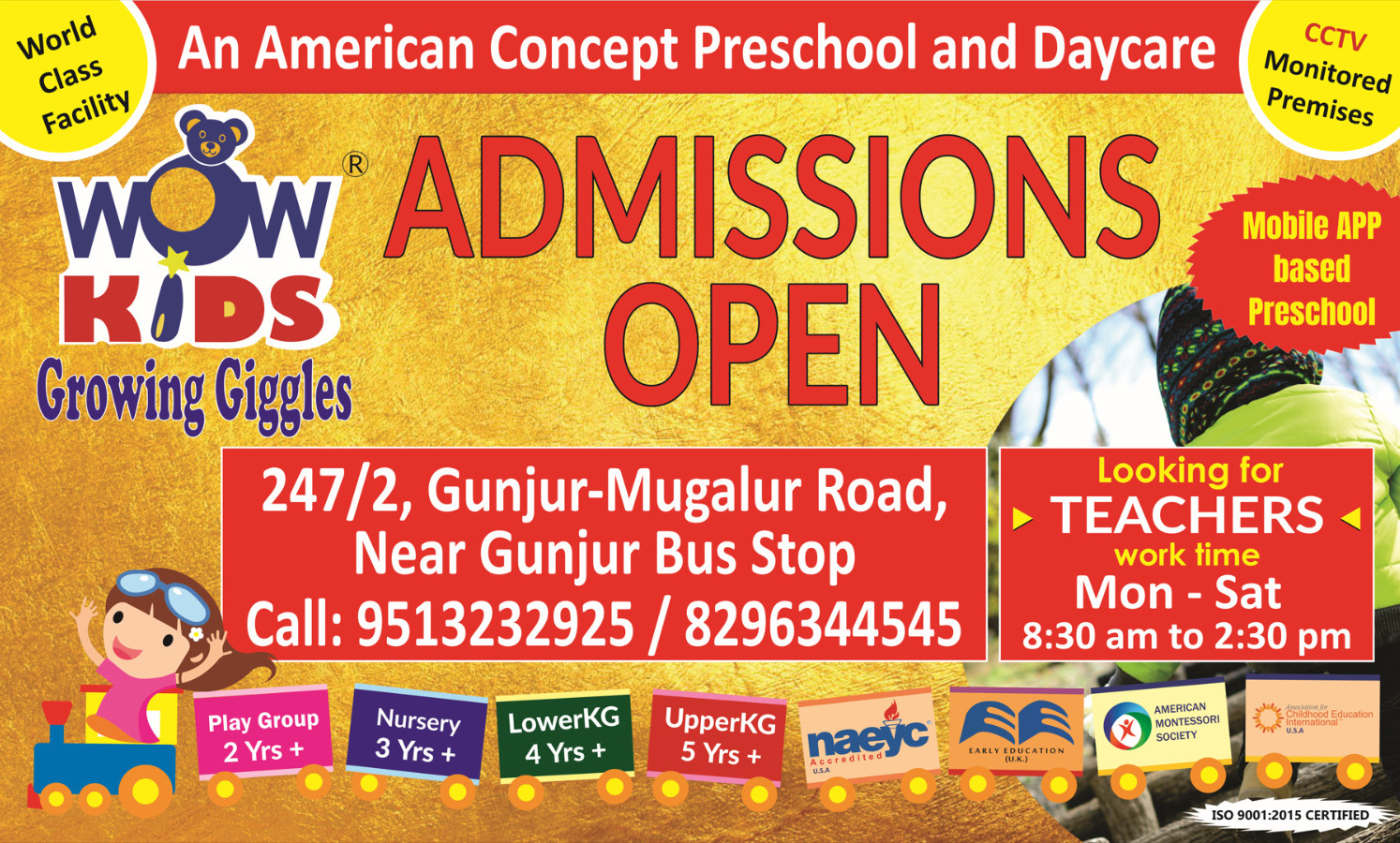 Located at 247/2, Gunjur Mugalur Road, Wow Kids Growing Giggles is a nurturing preschool and activity center dedicated to early childhood development. We provide a safe, joyful, and stimulating environment where young minds are encouraged to explore, learn, and grow with confidence.